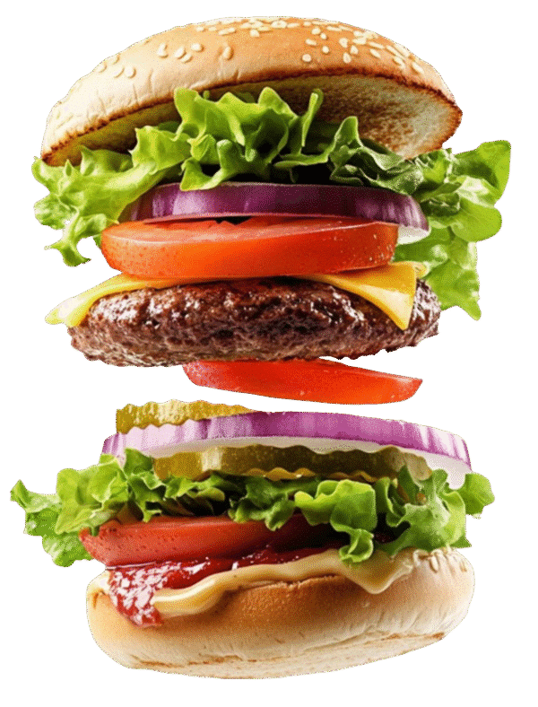 2,3,A,G,JRindfleisch 150 g. bacon, bbqsauce, käse, salat, tomaten, zwiebeln